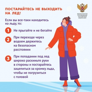 Правила поведения на льду: 1. Ни в коем случае нельзя выходить на лед в темное время суток и при плохой видимости (туман, снегопад, дождь). 2. При переходе через реку пользуйтесь ледовыми переправами.